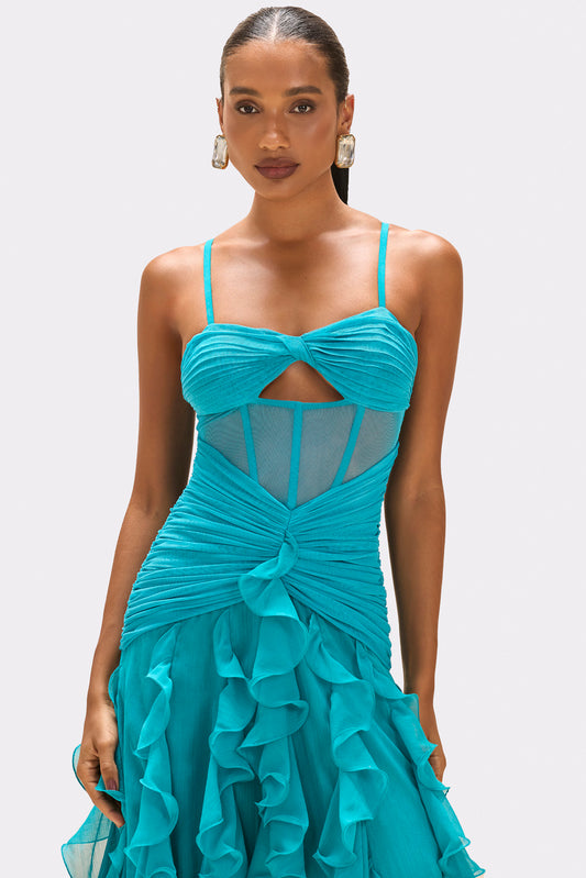 VESTIDO LONGO CHIFFON WONDERLAND AZUL