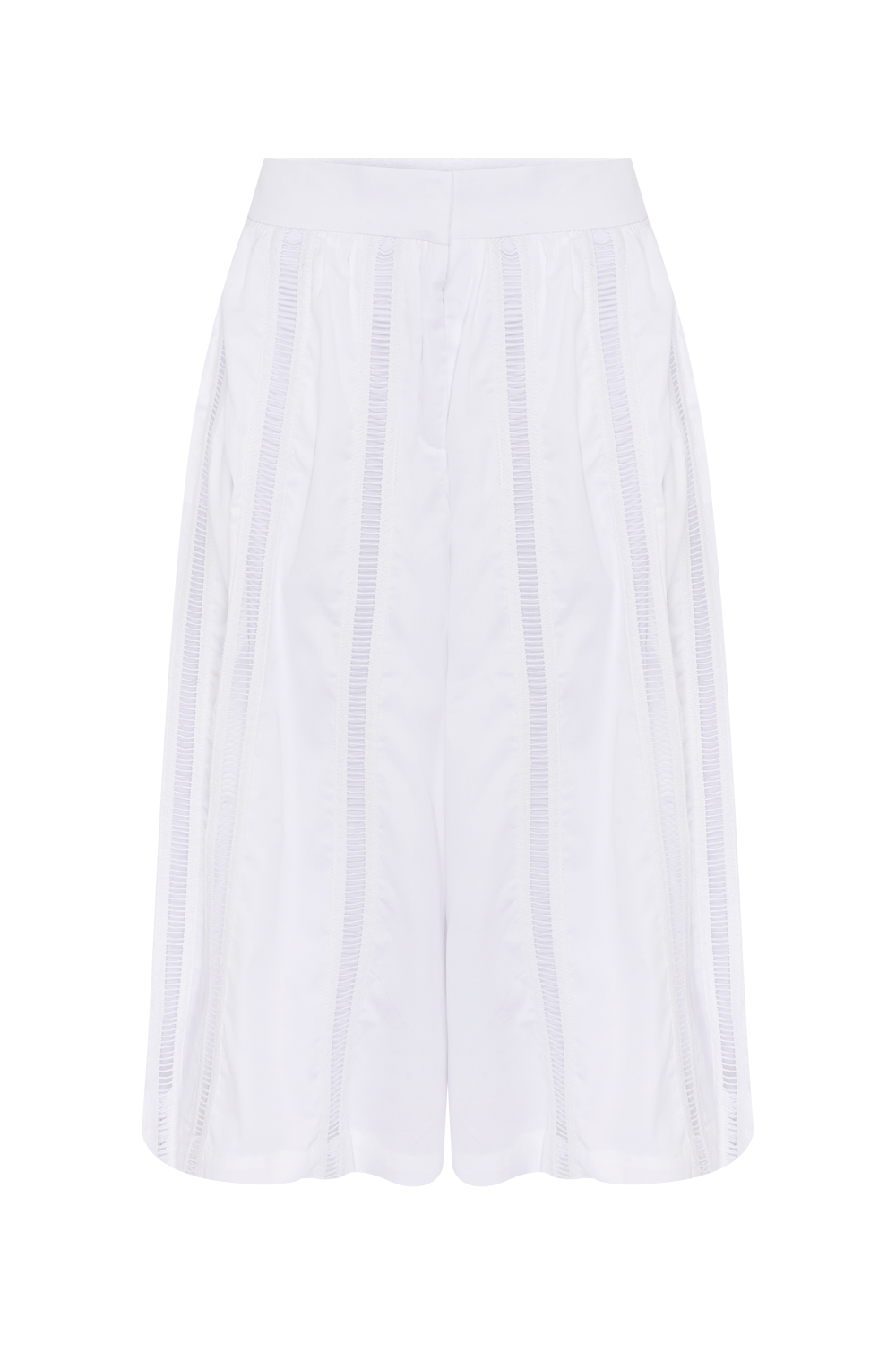 Confeccionada em tricoline, esta bermuda apresenta modelagem ampla que garante leveza e conforto ao vestir. Os entremeios de renda adicionam delicadeza e sofisticação ao design, criando contraste sutil com a estrutura da peça. O fechamento com zíper comum assegura praticidade e acabamento discreto.
