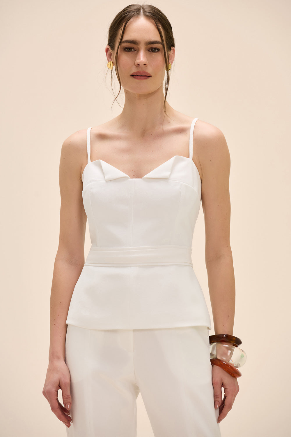 A faixa na cintura realça as curvas e proporciona um acabamento elegante, tornando-o ideal tanto para combinações com saias de cintura alta quanto para calças de alfaiataria. Perfeito para transitar do dia para a noite com estilo.