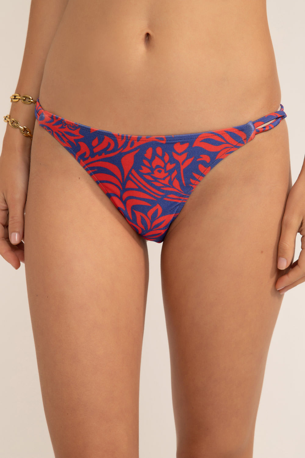 Calcinha de biquíni com modelagem tradicional, duas tiras em cada lateral e forro interno.