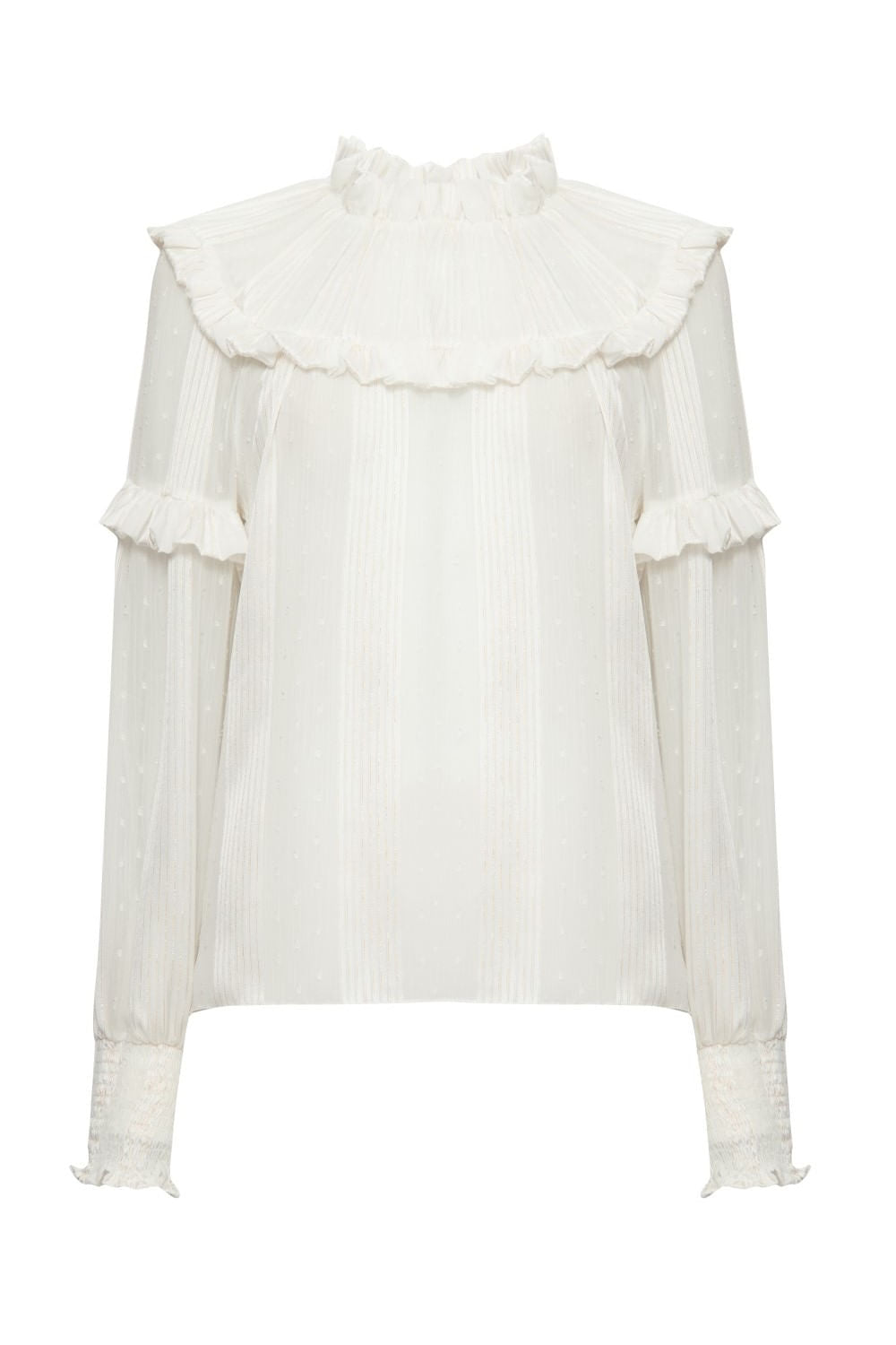 CAMISA GOLA BABADO SILK DOTS OFF WHITE