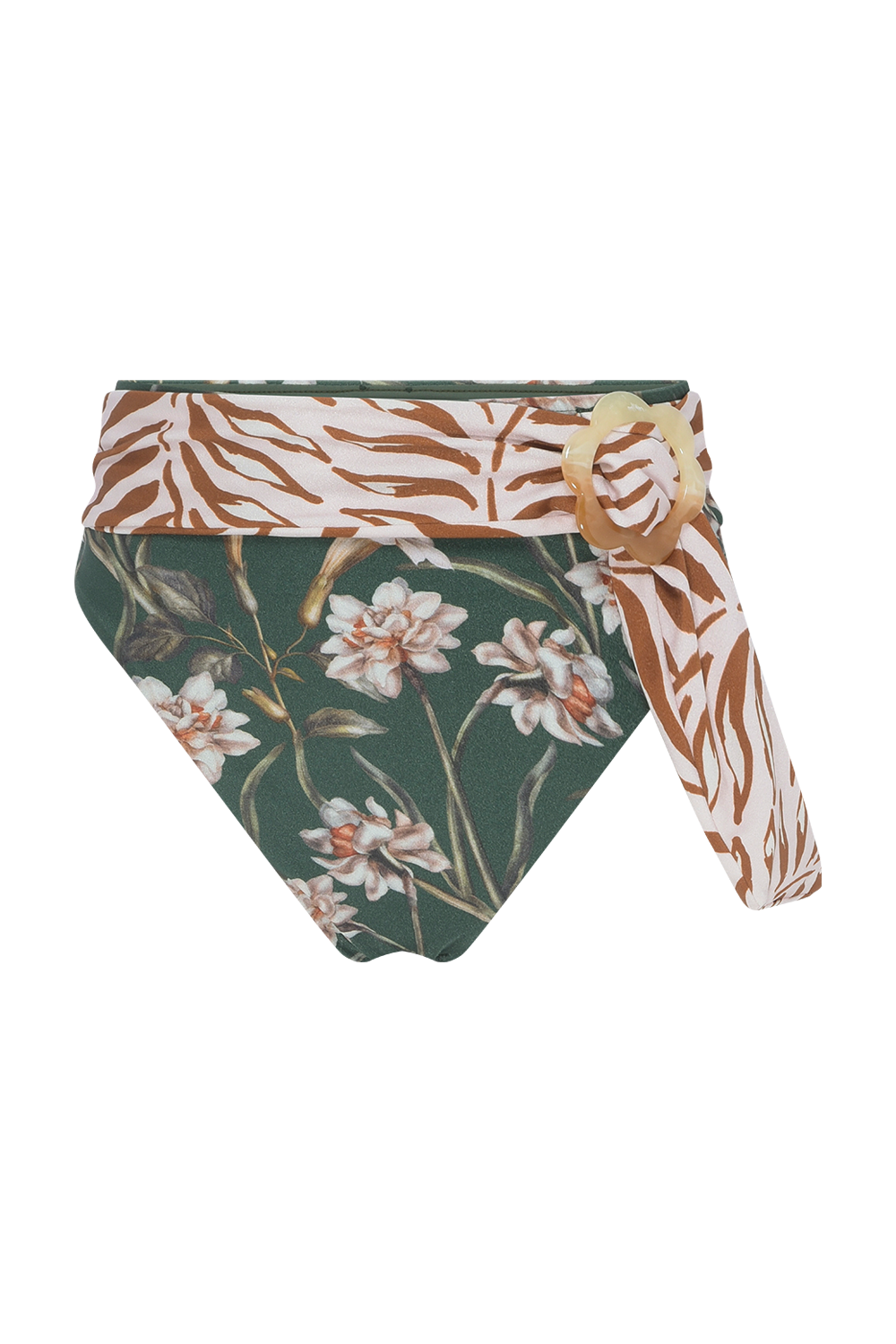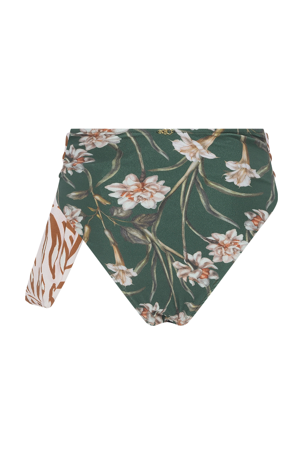 A hot pants narcissus combina o charme vintage com elementos pintados à mão. Com estampa botânica exclusiva, ela ganha destaque com o mix de estampas e uma fivela delicada em forma de flor, que adiciona um toque especial à peça. Pensada para valorizar e oferecer sustentação, é perfeita para relaxar à beira da piscina ou desfilar pelas areias douradas de Ipanema.