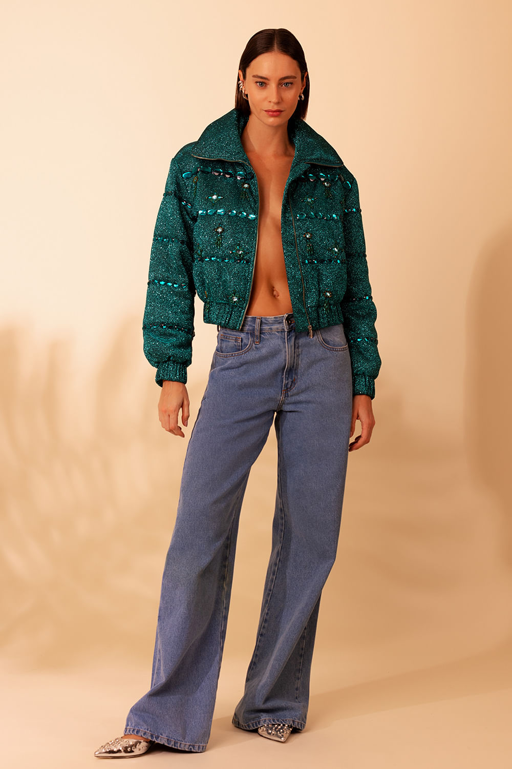JAQUETA BORDADA MALHA PRETTY SHINE VERDE
