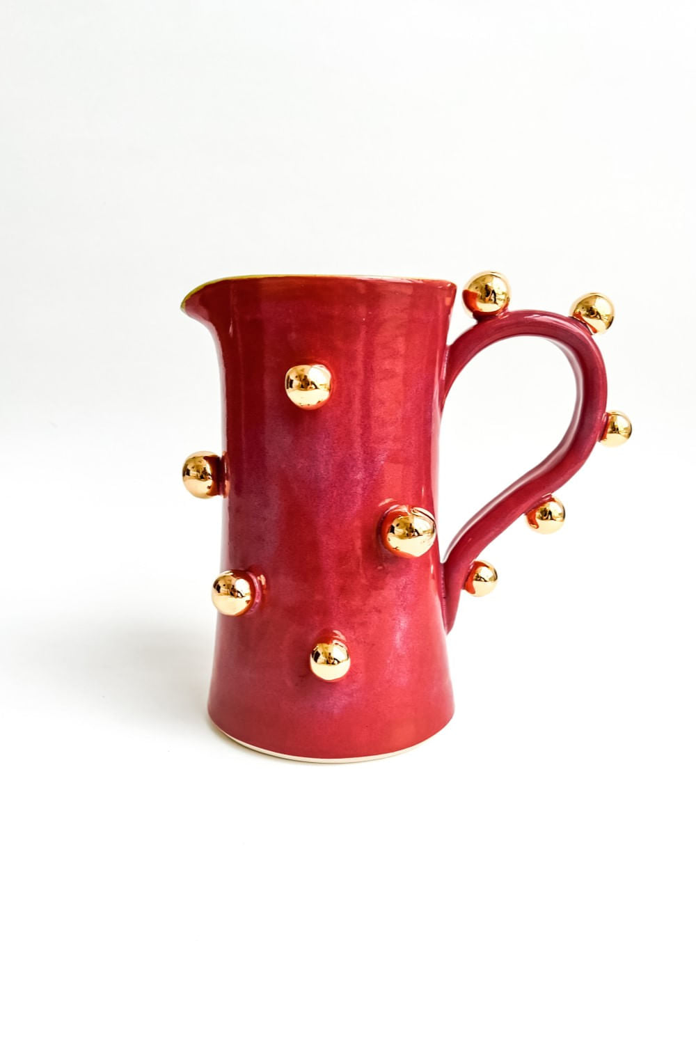 Desenvolvida pela marca Marô Antunes, essa jarra é produzida em cerâmica, pintura feita à mão e detalhes pintados com ouro.