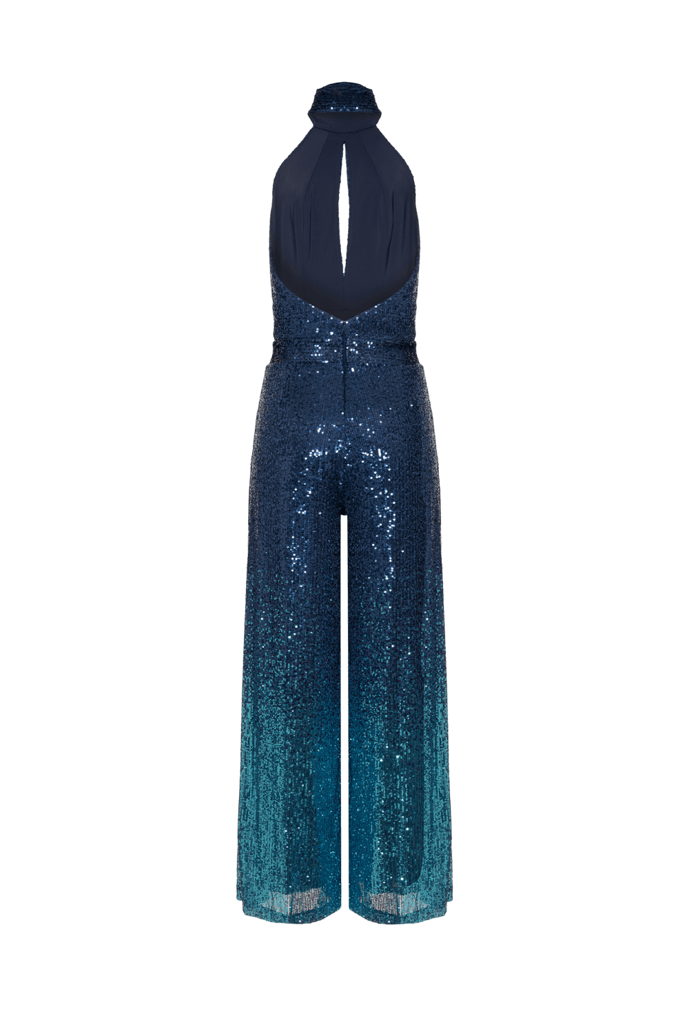 Macacão confeccionado em paetê, possui franzidos, gola alta, três botões encapados na nuca, zíper invisível no centro costas e forro interno.