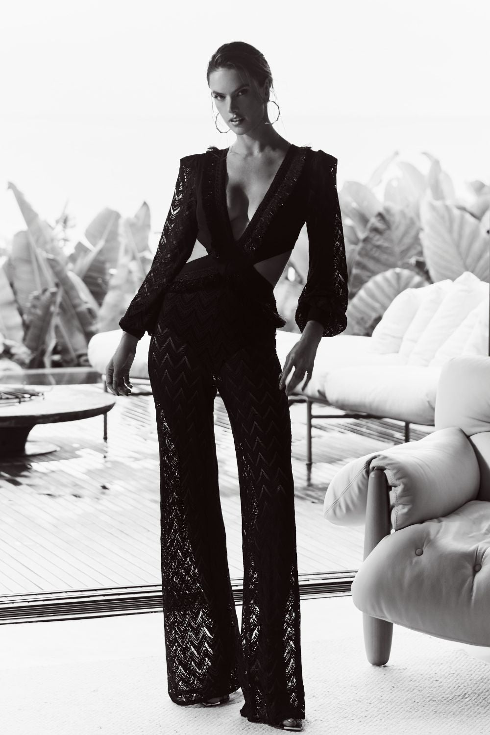 Desenvolvido em Collab com a modelo Alessandra Ambrósio, o Macacão Fringe possui mangas e calça em tela, ombreiras, aplicação de entremeio com franjas, zíper destacável no centro costas e forro interno.
