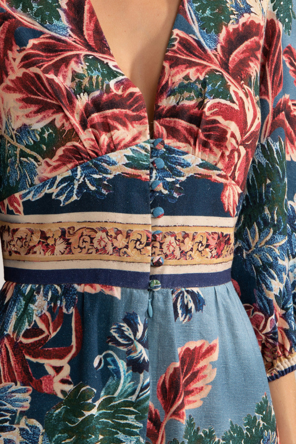 Como a estampa Gilly Flower é uma estampa localizada (que não se repete igualmente por todo o tecido), as peças são cortadas em diferentes áreas do tecido fazendo com que as mesmas nunca fiquem iguais. Podendo assim, uma ter o fundo mais aparente e outra ter a parte floral mais aparente.