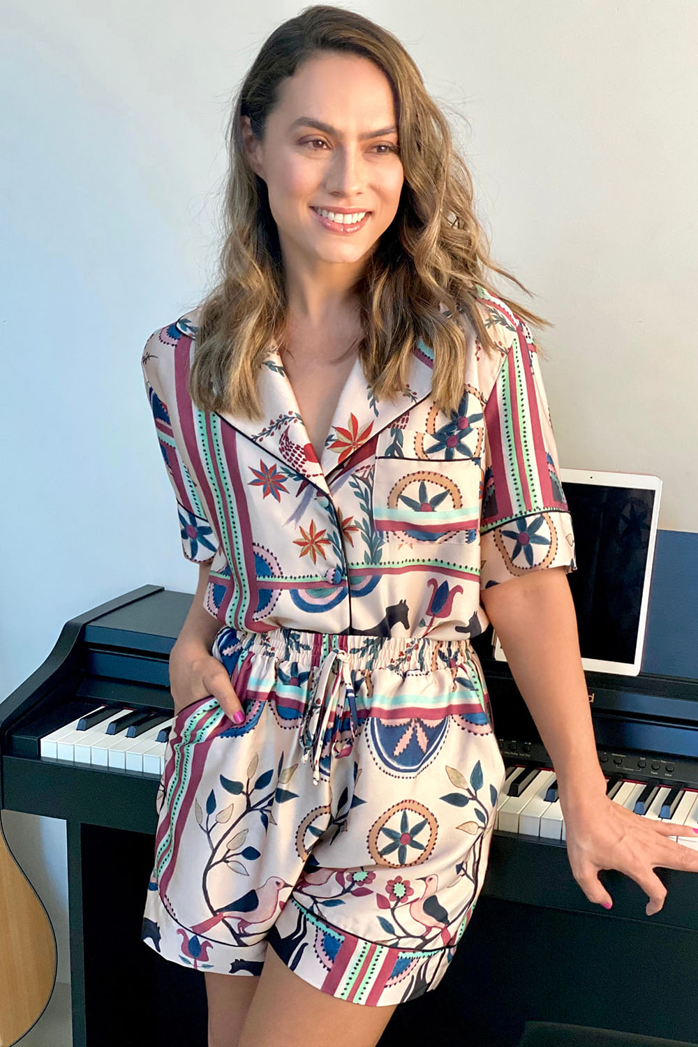 PIJAMA CURTO CORDEL ÉTNICO OFF WHITE