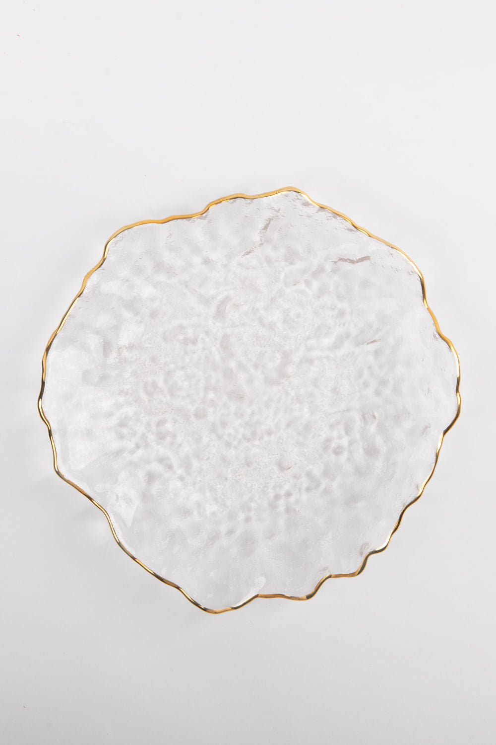 PRATO DE SOBREMESA BORDA DOURADA SOPRO CLEAR GOLD