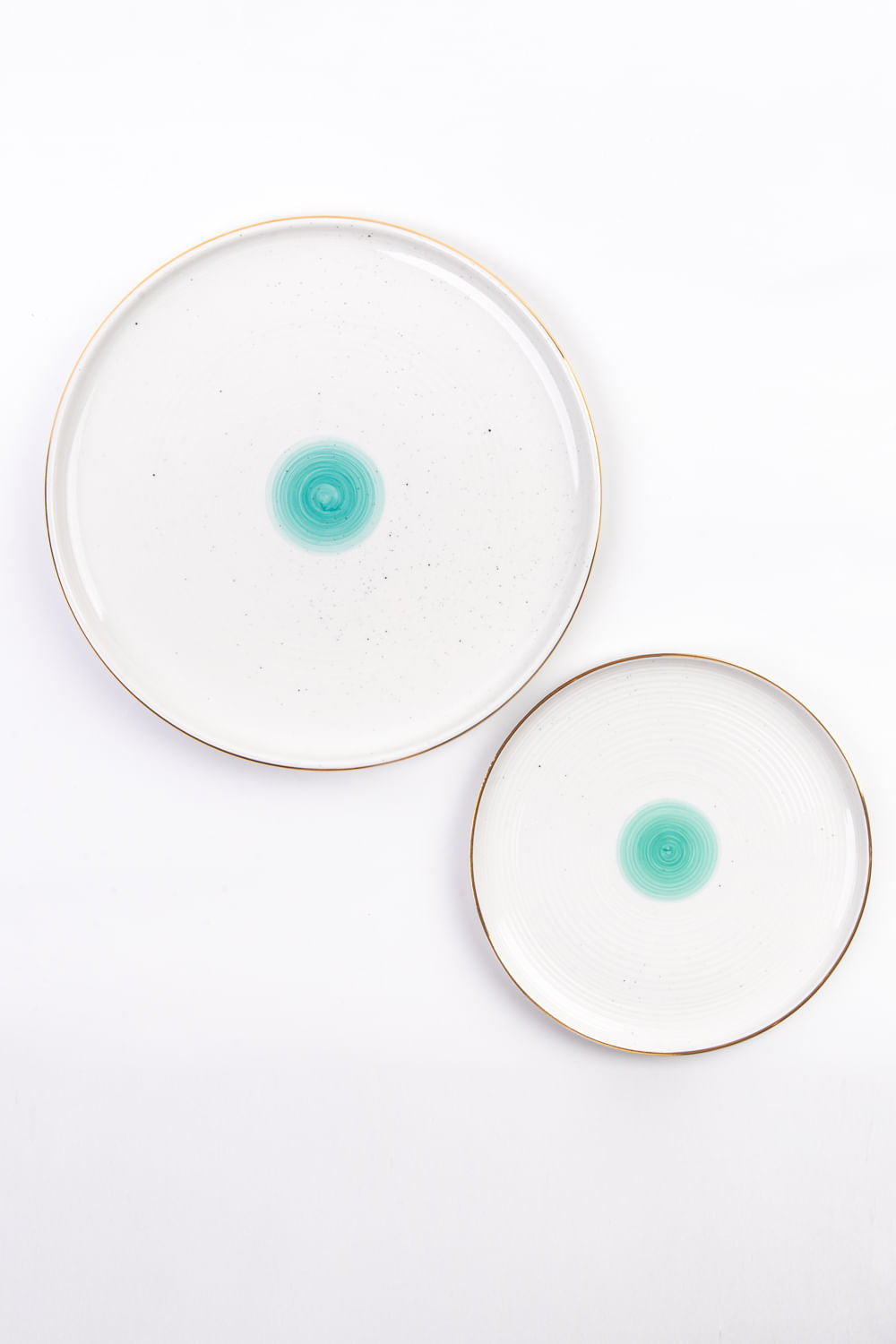 Prato raso em porcelana com estampa exclusiva e borda alta com pintura na cor dourado.