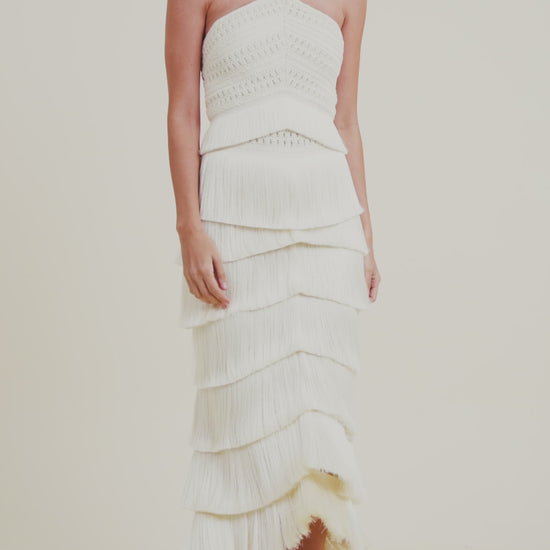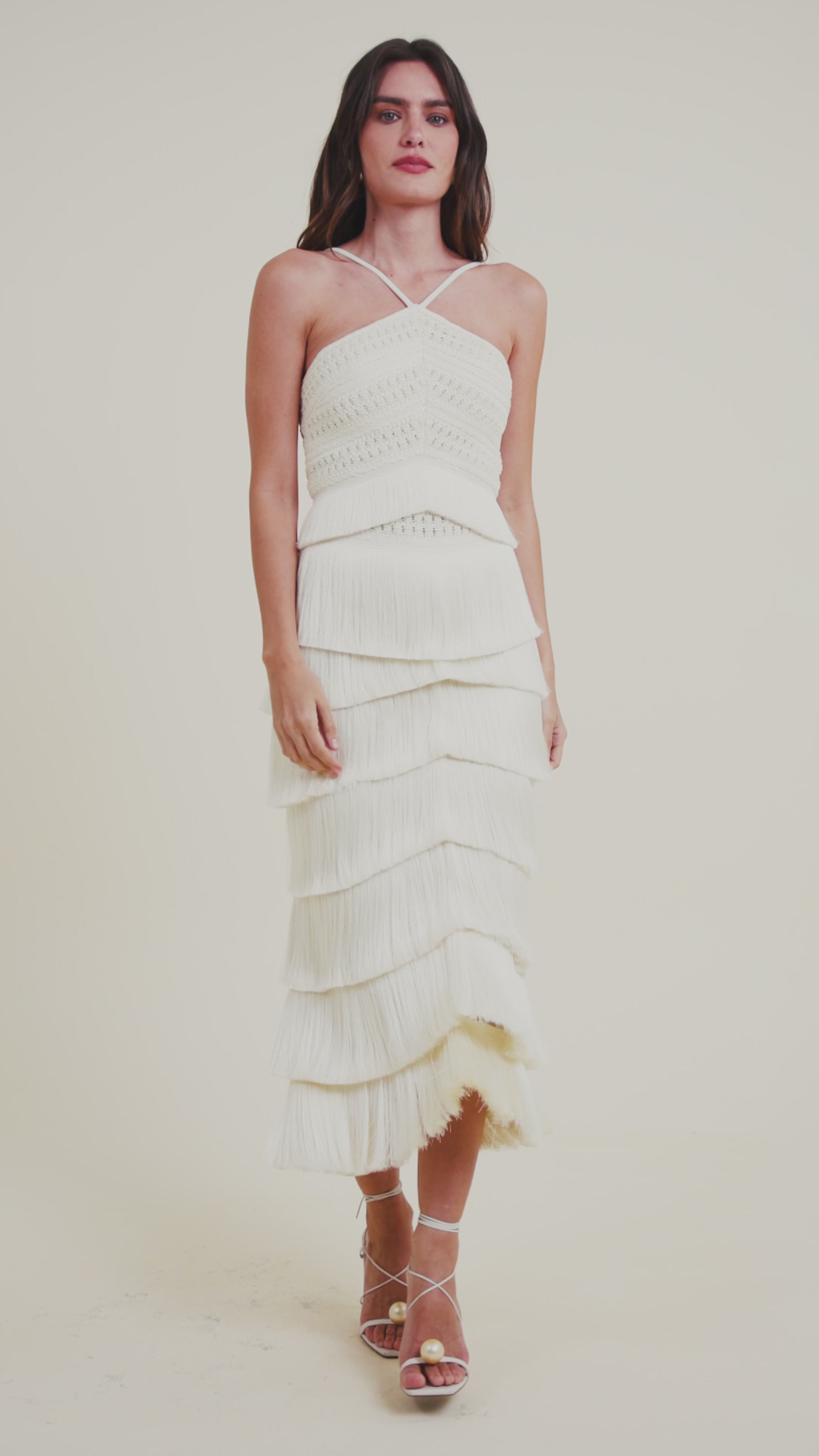 A saia midi em camadas de franjas apresenta muito DNA Patbo. Construída com cós de entremeio e camadas de franjas, é uma opção para um look repleto de movimento e bossa. Finalizado com zíper invisível nas costas.