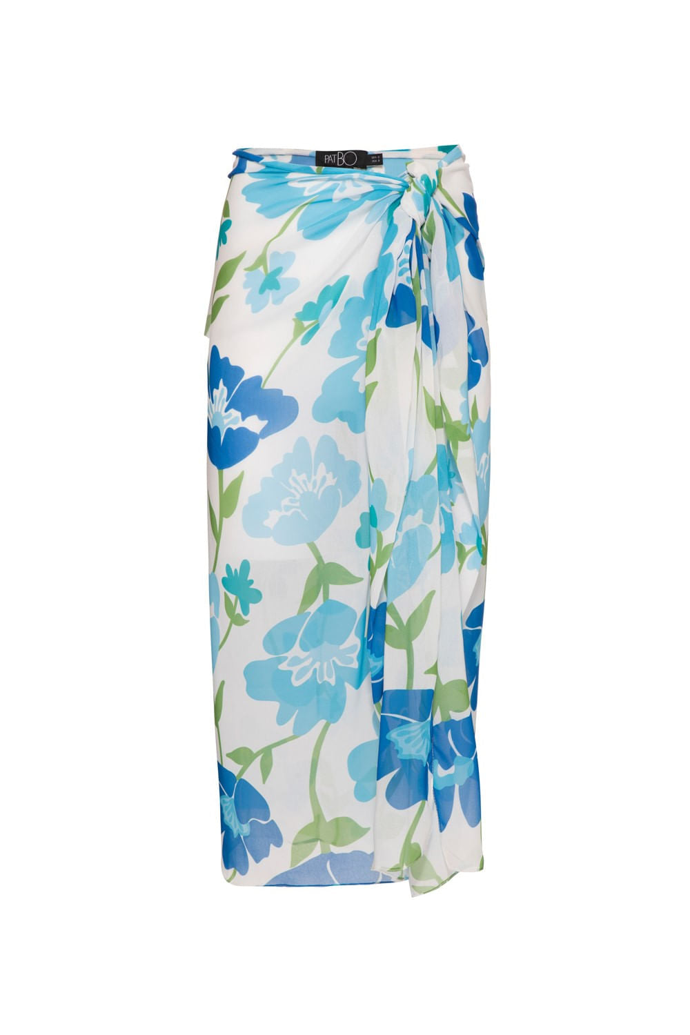 Saída de praia mídi transpassada com elástico embutido na parte posterior do cós e cordão para amarração na cintura.