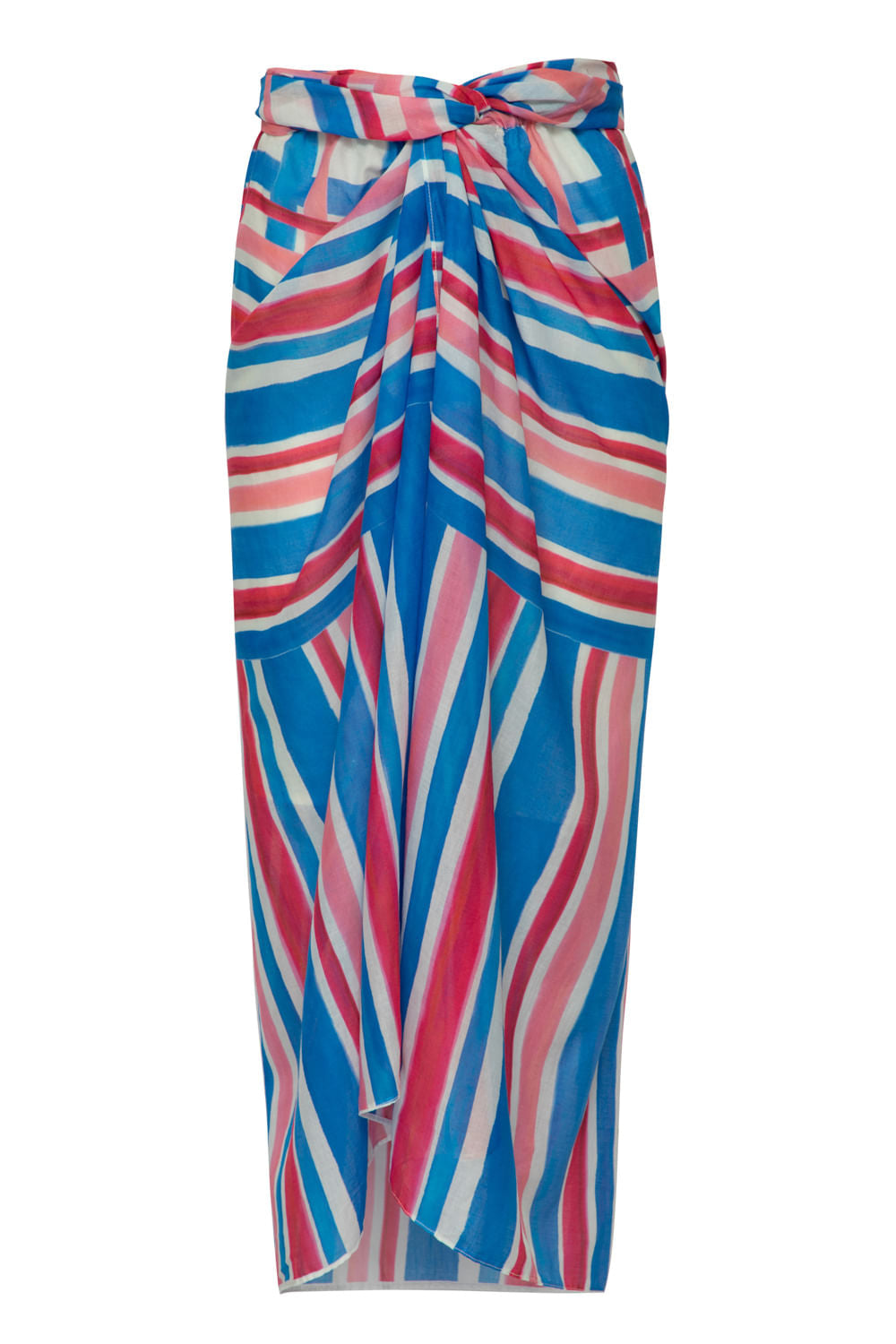 Saída de praia mídi como elástico embutido no cós, saia transpassada e duas tiras duplas para amarração frontal/ lateral.
