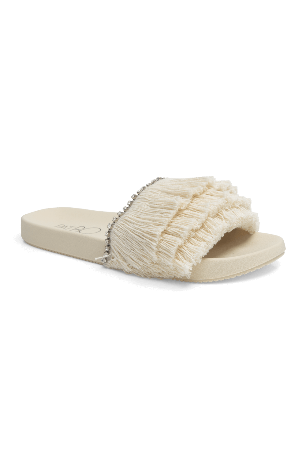 Sandália confeccionada com a base aborrachada , possui franjas e strass aplicado.