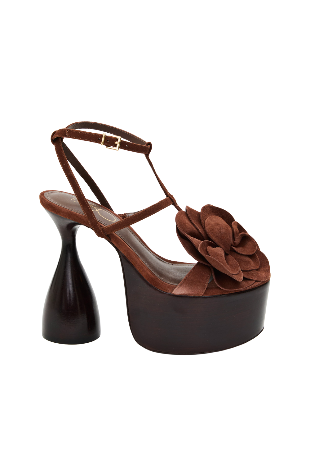 Imponente e inésquecivel a Sandália Leila é uma verdadeira obra de arte para os pés. Ela se destaca pelo seu salto escultural em formato sino, equilibrando a força da sua plataforma com a exuberância feminina das flores esculpidas em couro. Suas tiras finas contrastam com a sua forma, criando uma silhueta audaciosa e super feminina, pensada para elevar o nível da sua produção.