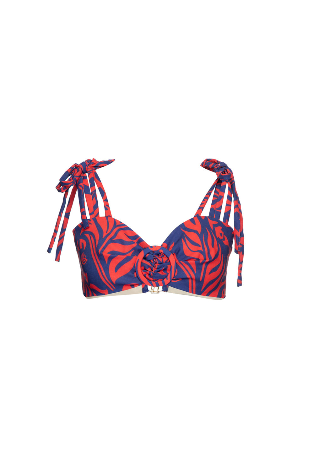 TOP ALÇA AMARRAÇÃO TROPICAL GRÁFICO AZUL