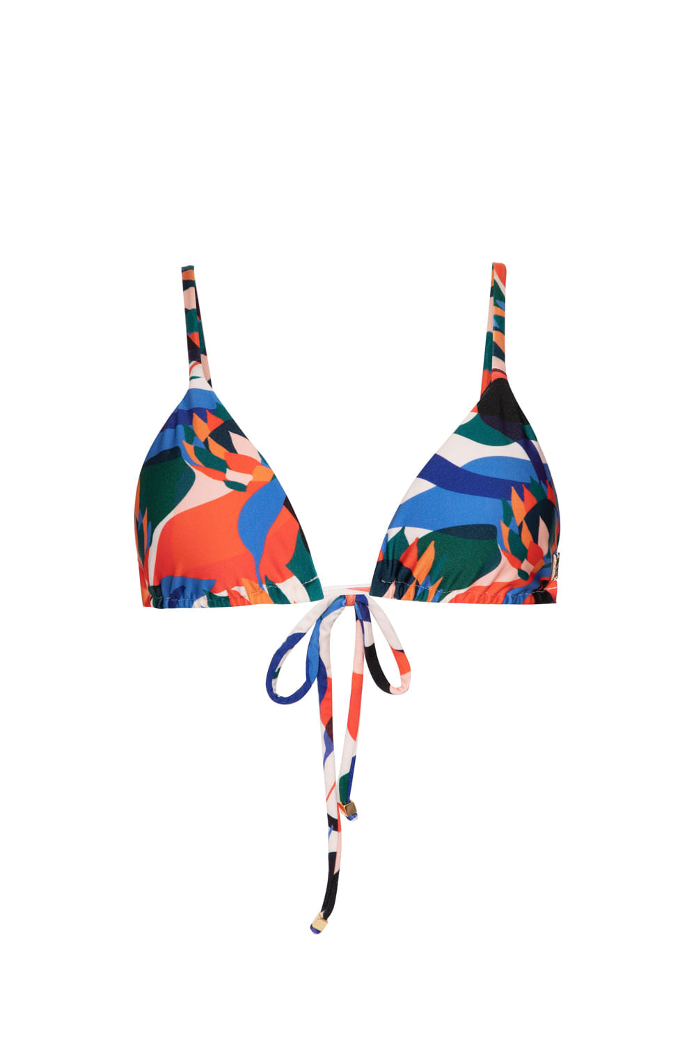 Top de biquíni com modelagem cortininha, dois cordões para amarração nas costas, alças com regulagem e forro interno.