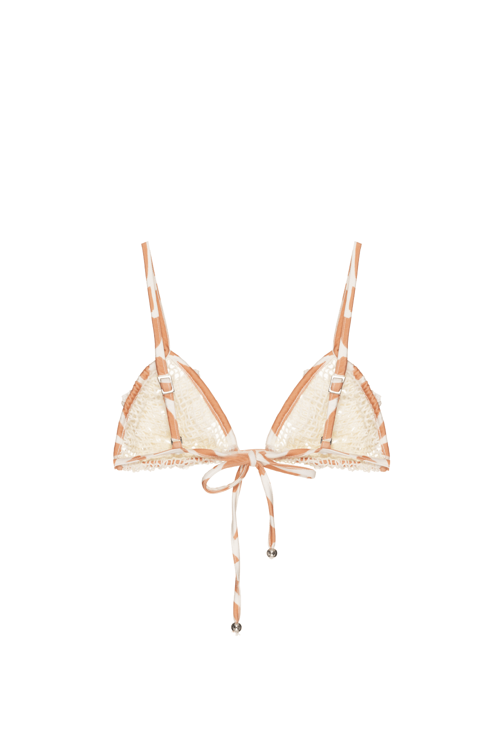 Top de biquíni estampado confeccionado em lycra e tela, possui bordado aplicado, alças finas e reguláveis, e cordões para amarração no centro costas.