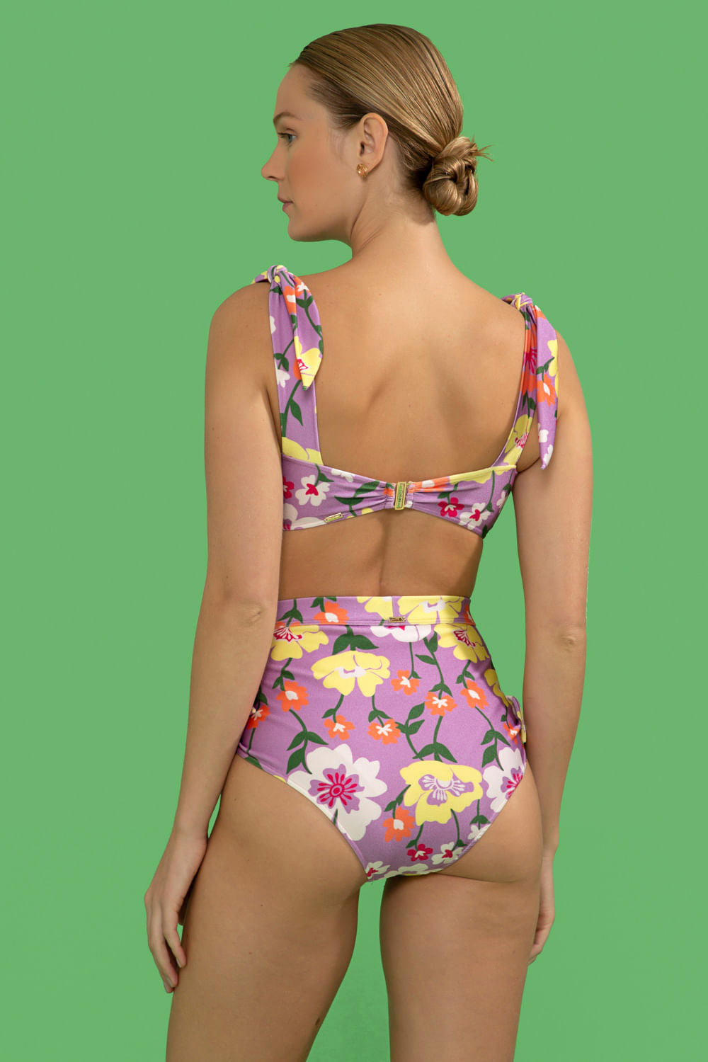 TOP BIQUÍNI LAÇOS RETRÔ FLOWER LILAS