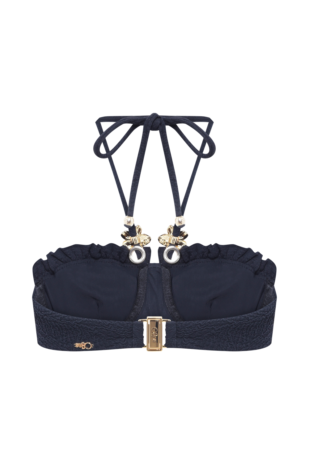 O top de biquíni Breeze Jacquard combina delicadeza e sofisticação em uma proposta feminina e cheia de personalidade. Confeccionado em malha jacquard com textura elegante, destaca-se pelos babados sutis no decote, que acrescentam charme ao visual. O busto estruturado com aro valoriza a silhueta, enquanto as alças frontais ganham um toque especial com o aviamento dourado em formato de flor. Nas costas, o fecho garante um ajuste elegante, completando a peça com um acabamento refinado.