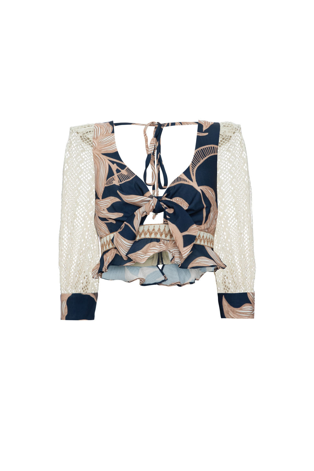 TOP MANGA TELA STARGAZER AZUL MARINHO