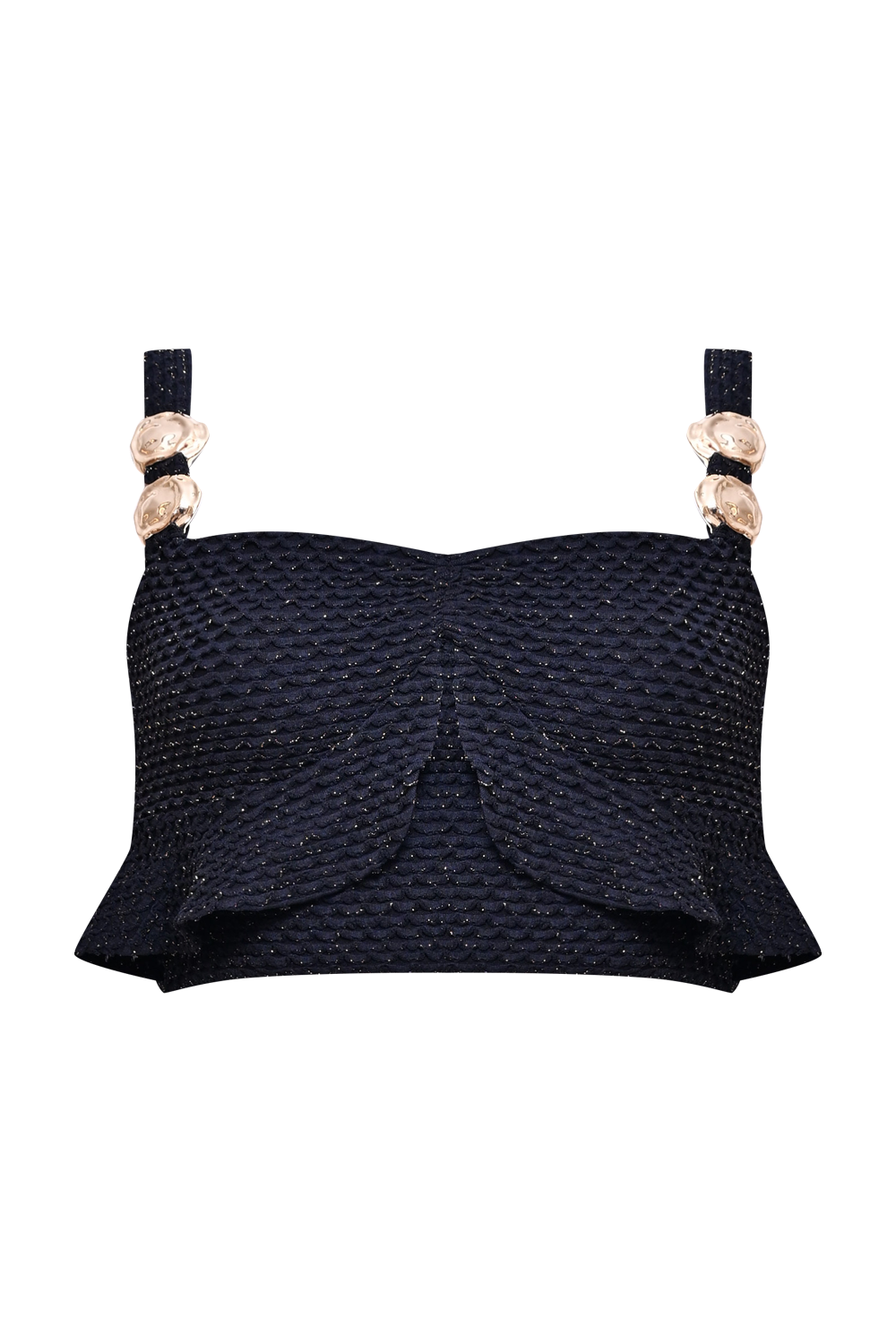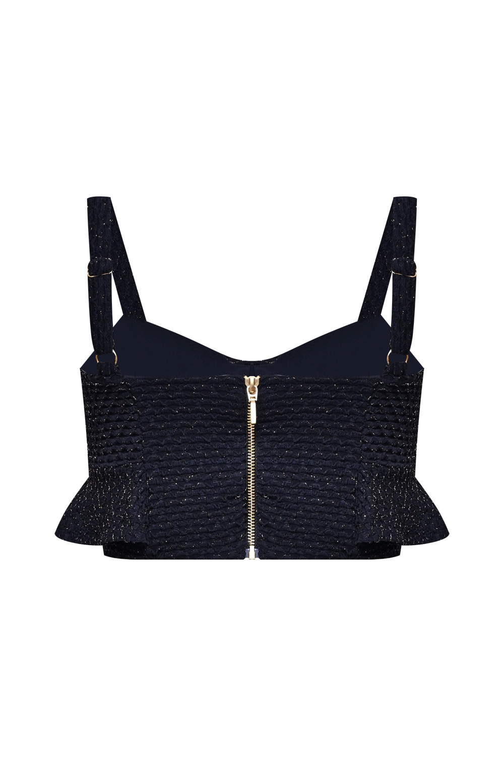 Com brilho delicado e um charme irresistível, este top em malha jacquard com lurex é a escolha perfeita para iluminar looks com uma pegada jovem e sofisticada. O shape justinho valoriza a silhueta com leveza, enquanto o decote coração adiciona um toque romântico e feminino. Os aviamentos dourados nas alças trazem um detalhe moderno e elegante, e o recorte com babado confere movimento e bossa à peça. Totalmente forrado para mais conforto, é ideal para compor conjuntos ou ser o ponto de destaque em combinações cheias de personalidade. Um top feito para brilhar — dia ou noite.