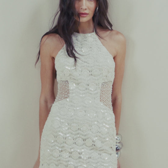 VESTIDO CURTO CROCHET BLOOM BEGE