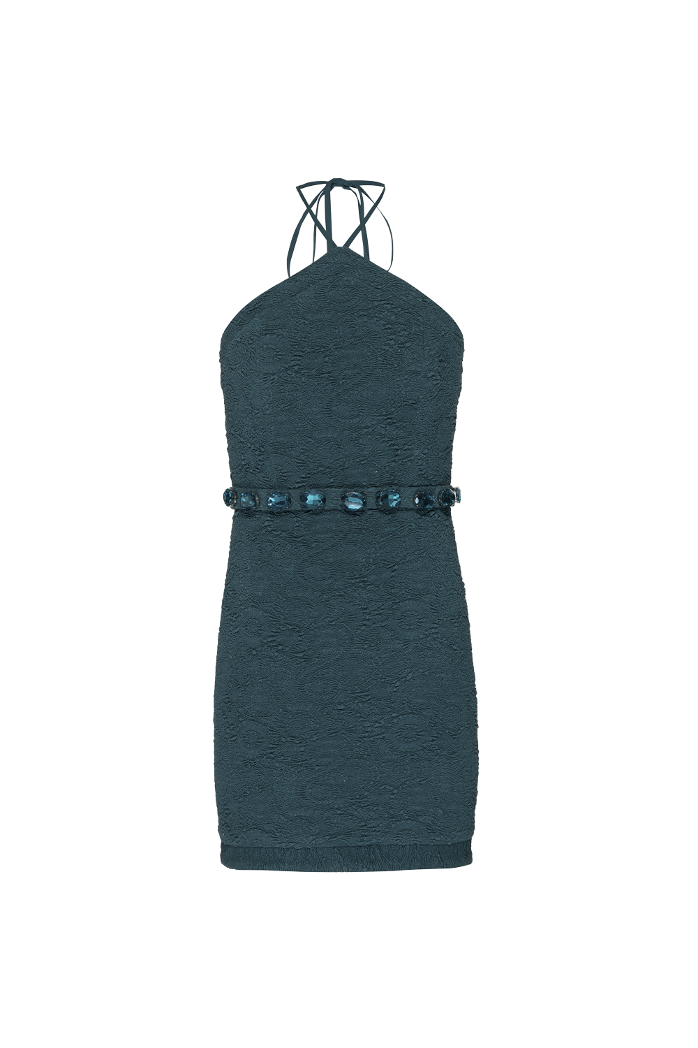 VESTIDO CURTO FRENTE ÚNICA JACQUARD NOSTALGIC MEMORIES VERDE PETROLEO