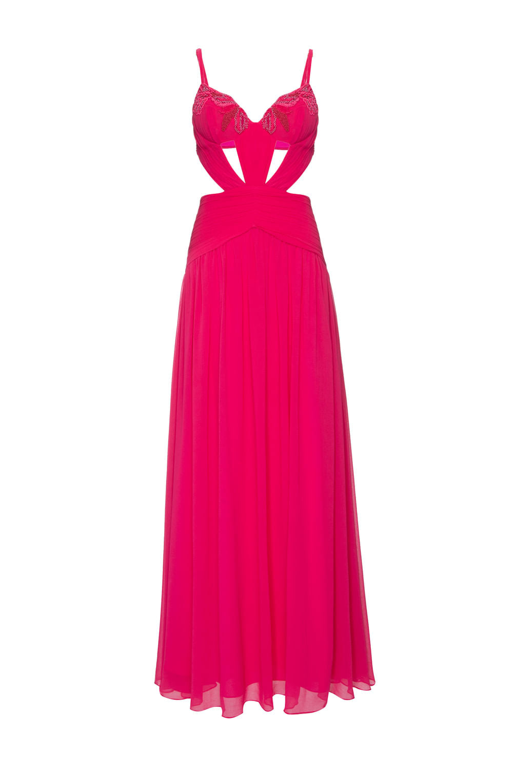 VESTIDO LONGO BUSTO BORDADO CHIFFON ÍRIS PINK