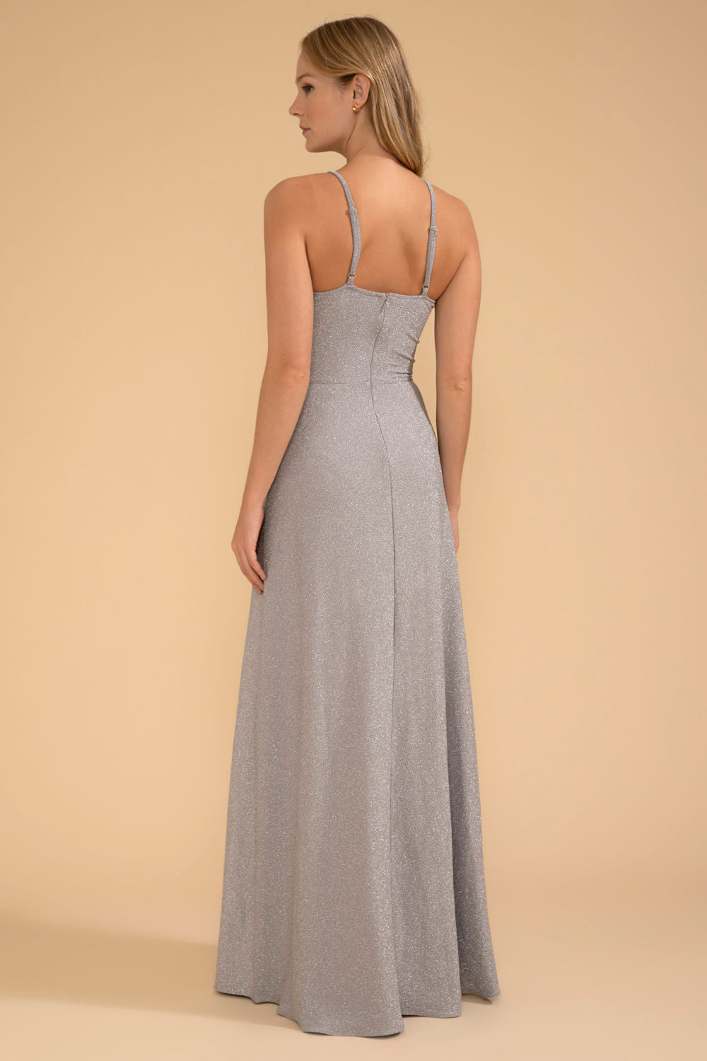 VESTIDO LONGO BUSTO FRANZIDO LUREX CAMDEN PRATA