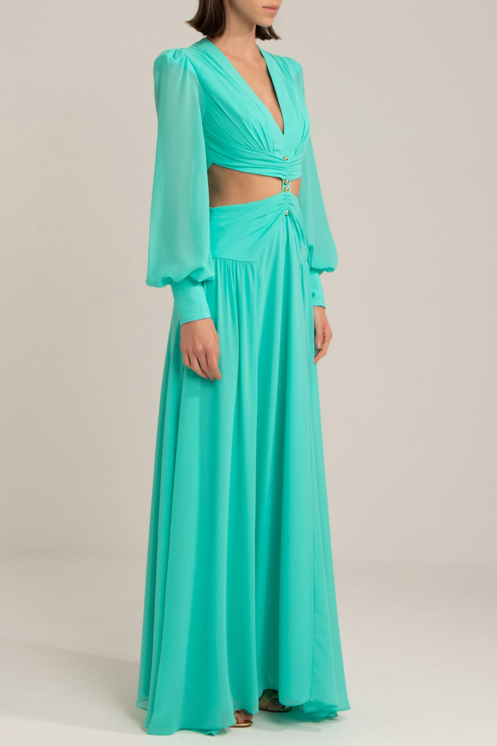 VESTIDO LONGO FERRAGEM CHIFFON BLOOMING AZUL