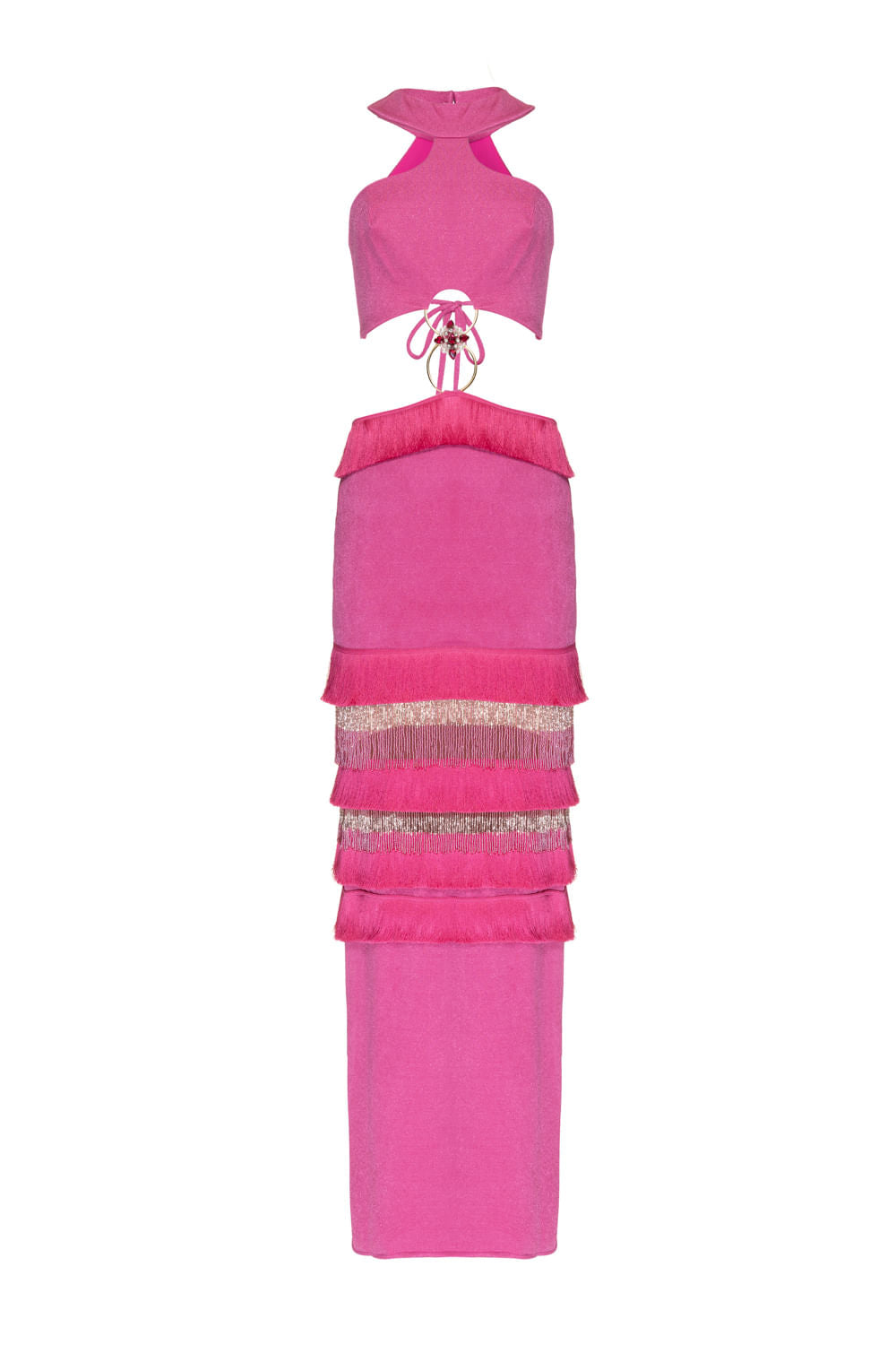 VESTIDO LONGO FRANJAS RECORTES WILD FRINGES PINK
