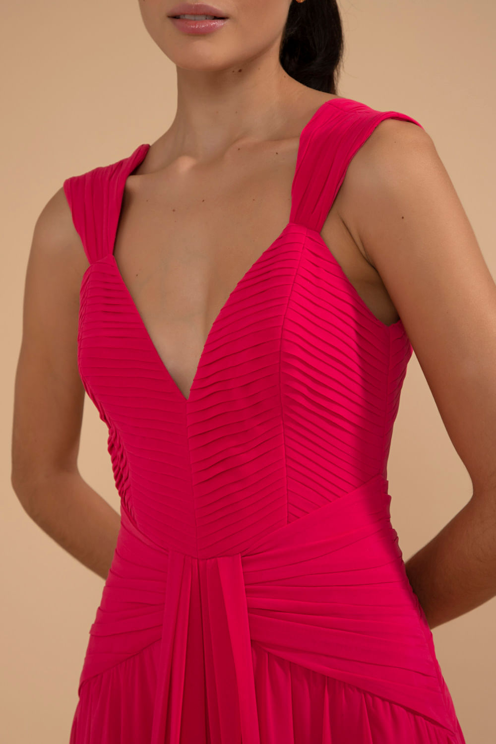 VESTIDO LONGO PALA PREGAS CHIFFON ÍRIS PINK