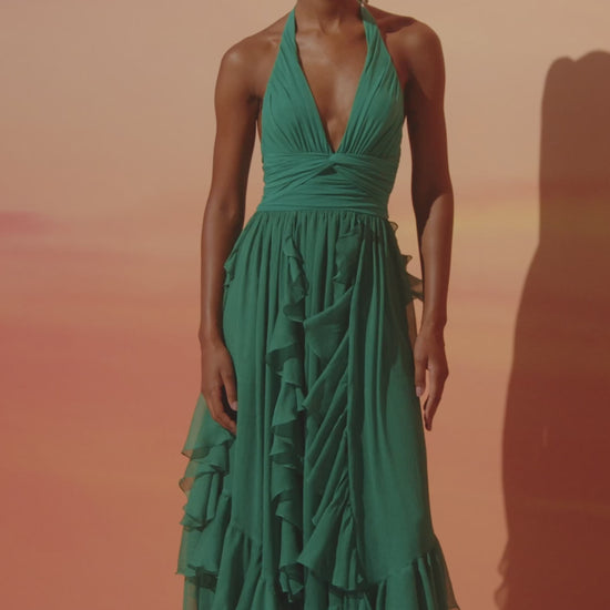 VESTIDO LONGO CHIFFON DAYDREAM VERDE