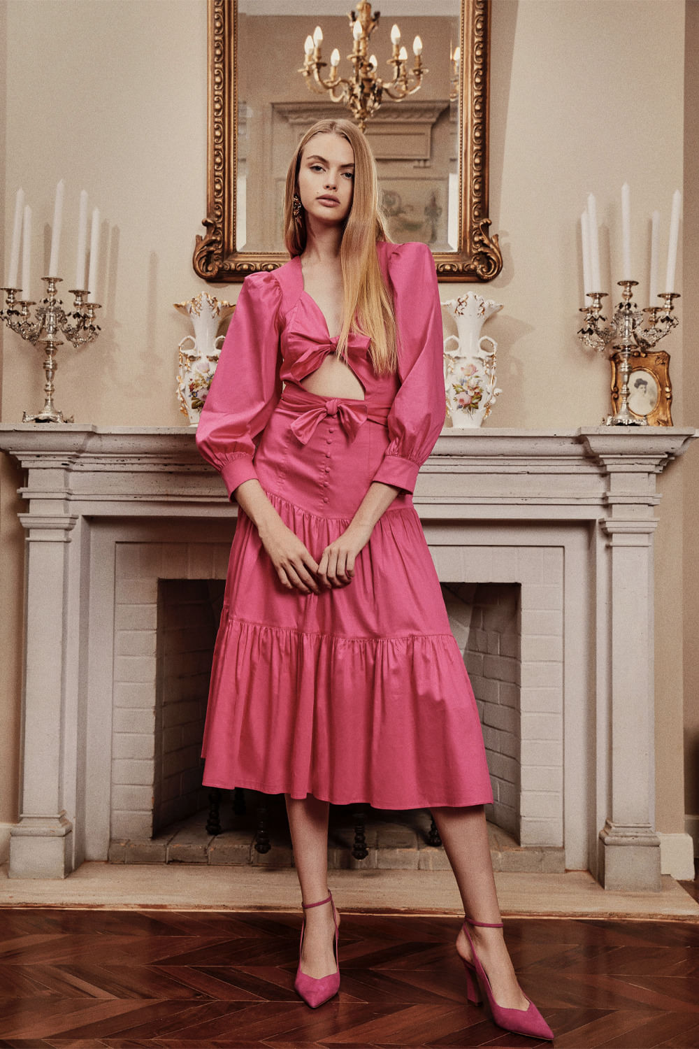 VESTIDO MÍDI AMARRAÇÕES TRICOLINE PINK