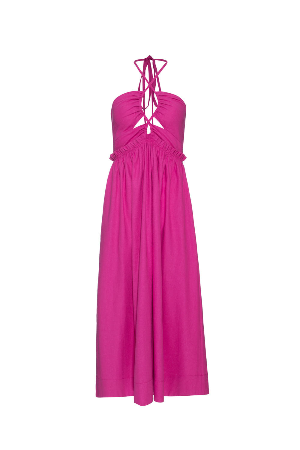 VESTIDO MÍDI FRANZIDO LINHO BALNEÁRIO PINK