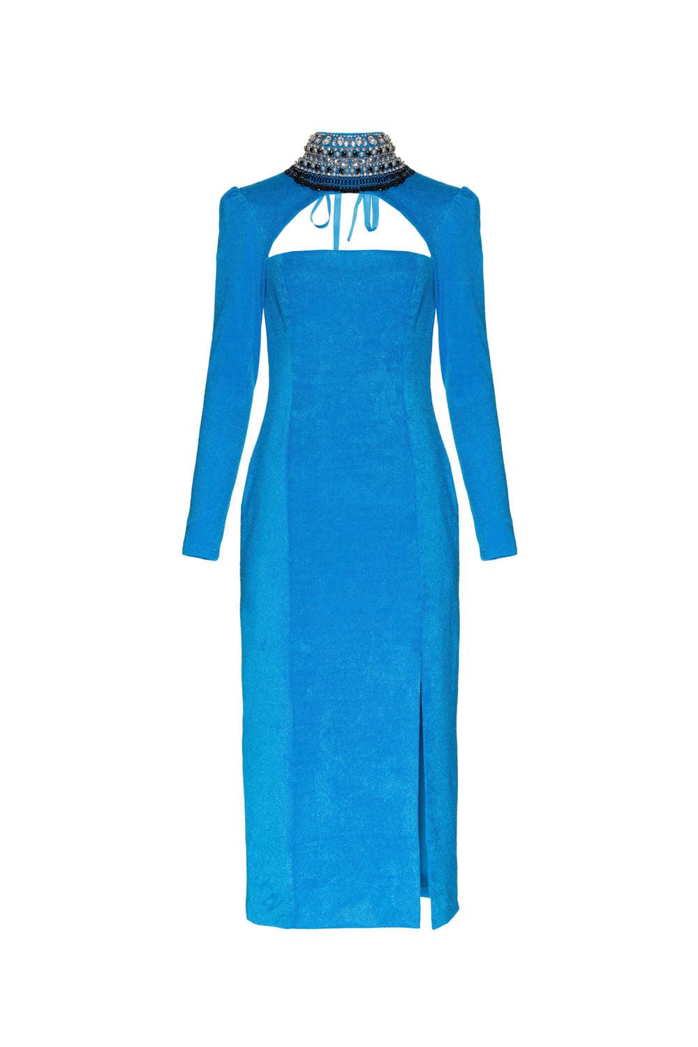 VESTIDO MÍDI GOLA REMOVÍVEL MALHA LUXOR SPY AZUL