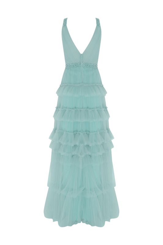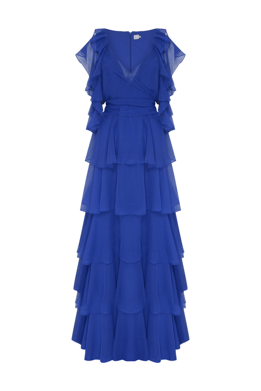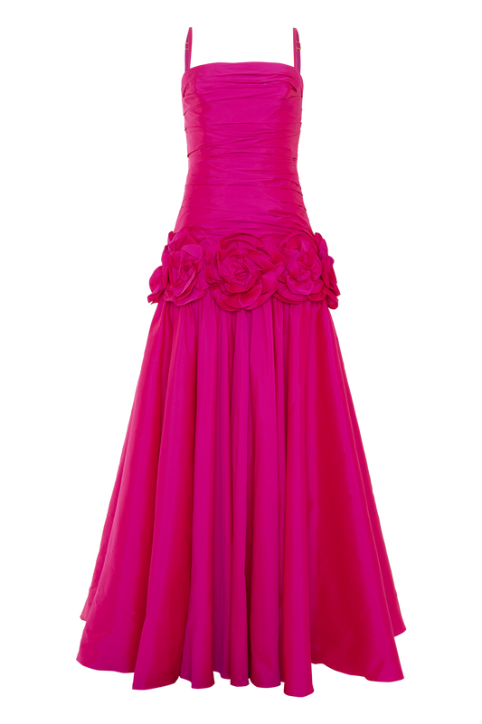 Cada elemento é pensado: desde um bordado posicionado com precisão até o forro que acompanha o movimento sem travar. A tridimensionalidade dos tecidos, o caimento pensado para gerar balanço e os acabamentos manuais entregam um resultado final que encanta em cada ângulo.