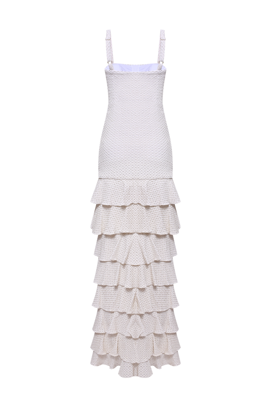 À primeira vista, pode parecer que o vestido longo fala por si. Mas é nos detalhes que mora a assinatura da PatBO — e é aí que a peça se diferencia das demais.